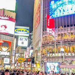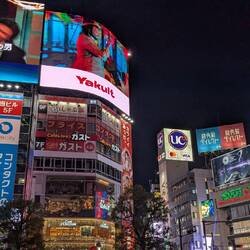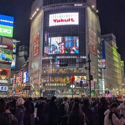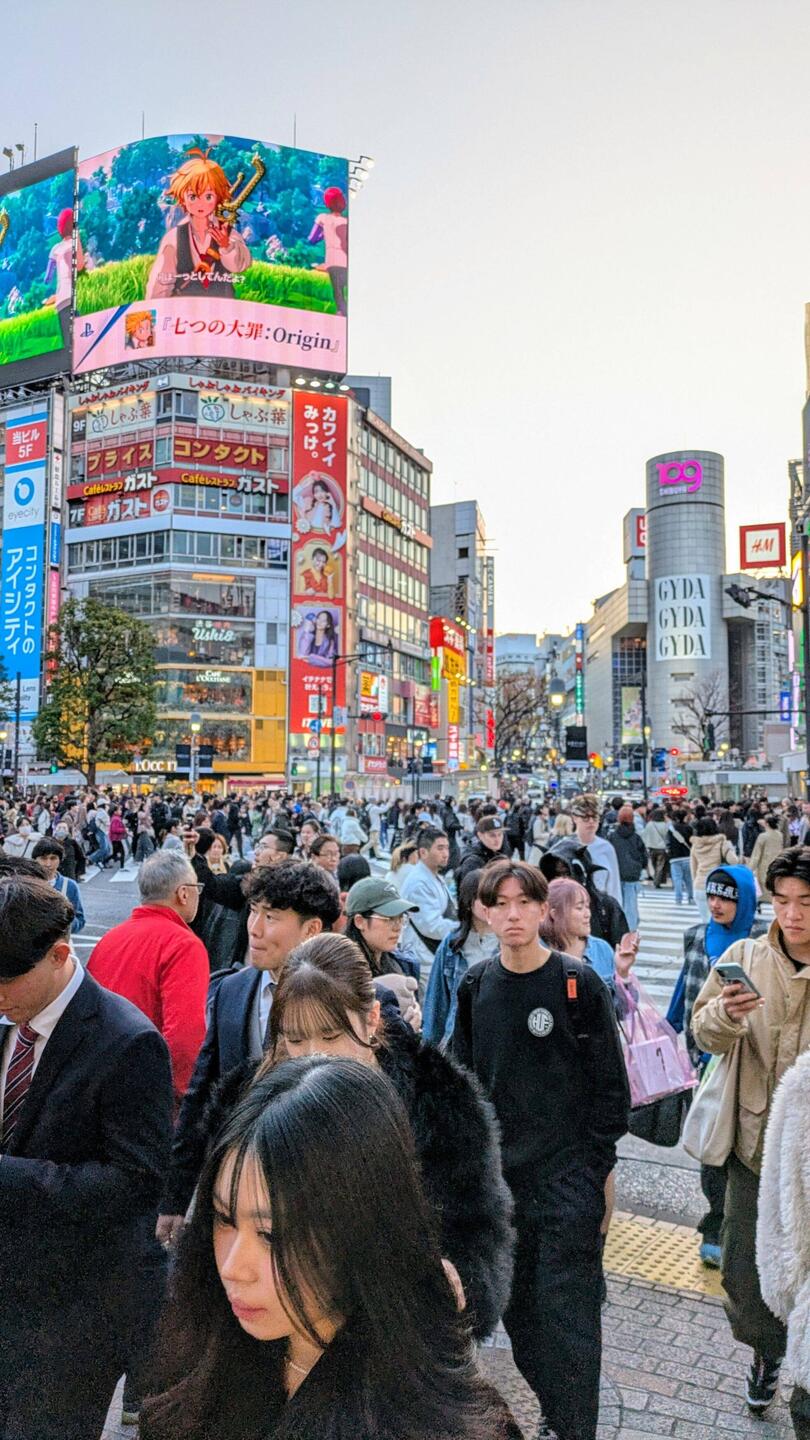 Natürlich waren wir auch in Shibuya. Natürlich an der berühmt-berüchtigten Scramble Crossing. Mal mittendrin, mal von einem höheren Blickpunkt.