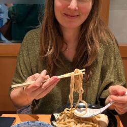 Das Essen ist toll, vor allem kann man überall, v.a. an Bahnhöfen und großen Ubahn-Knotenpunkten, und in den Food Floors in den Shopping Malls toll essen gehen. Das Auge isst immer mit, und alle scheinen Gourmets zu sein. Es ist auch nicht so teuer. Eine Schüssel Dip Noodles oder auch eine Portion Soba so um die eur 7. Ich bin sehr motiviert, einige Dinge zu Hause auf den Speiseplan zu übernehmen. Meine bisherigen Favoriten: Minimuscheln (Clams) auf Reis, Soba mit Tempura, gegrillter Aal, und natürlich Sashimi.Read more