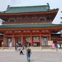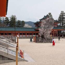 Beim Heian-jingu keimte die Hoffnung auf, dass an einem Montag Vormittag kaum bis nur wenige TouristInnen unterwegs sein werden. Außer uns natürlich. Denn wir sind die genau schlauen.