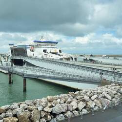 I had hoped to buy some gin for my son-in-law in a duty free shop, as would have been possible on the French side. Unfortunately, no gin and no shop. Boarding the ferry is nonetheless as smooth as in France.