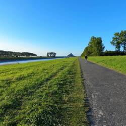 Bryan und ich machen uns zu Fuß auf den Weg zum Mont Saint Michel und legen an diesem Tag 10 km zurück. Die Umgebung wirkt dabei fast schon unerwartet wohlhabend – gepflegte Häuser, liebevoll angelegte Gärten und eine spürbare Ruhe, die nicht so recht zu den Massen an Tagestouristen passen will.