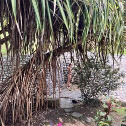 So liefen wir nun über 5 Hängebrücken und an 4 wunderschönen, einzigartigen Wasserfällen vorbei. Über uns zogen die Wolken so schnell vorbei, man konnte Ihnen dabei zusehen. Um uns herum im Dschungel flogen tiefblaue Schmetterlinge und verschiedenartige Vögel, durch das Gebüsch bahnte sich eine Schlange ihren Weg und riesige Spinnen zogen Ihre Netze über das Geländer der Hängebrücken. Auf dem Weg gib es 4 Checkpoints mit Walkie talkies. Beim 3. Punkt angekommen, sollten wir uns wie vereinbahrt mit der Rezeption in Verbindung setzen, da sie uns dann beim 4. Treffpunkt mit Pferden abholen werden.
