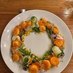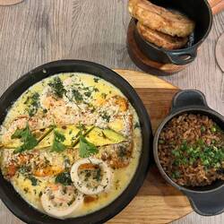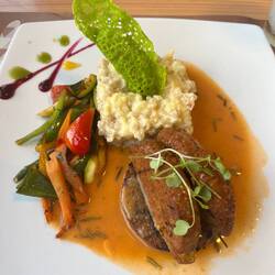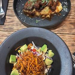 Zurück im Dorf gönnten wir uns einen Kaffee und Kuchen mit bester Aussicht auf den vorbeiziehenden Fluss. Am Abend assen wir in einem kleinen Restaurant, für Rocco gab‘s ein Fischfilet und für mich einen Vegi-Burrito. Lecker. 🫠Read more