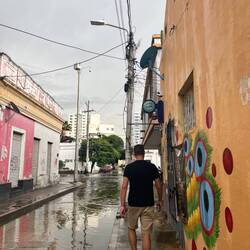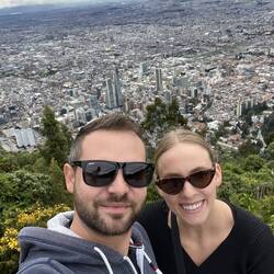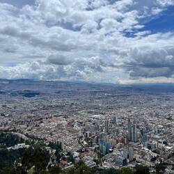 Am nächsten morgen beim Frühstück in der Unterkunft fühlten wir uns wie die reichen Kaufleute, die hier wohl im 18. Jahrhundert lebten. Lucy verwöhnte uns mit köstlichen Früchten, Rührei und selbstgemachtem Jugo de piña. Später fuhren wir nach einer ziemlich langen Anstehzeit mit einer Gondel hoch zum Cerro Monserrate. Diese Aktivität wurde uns empfohlen und der Ausblick auf die Stadt war wirklich ziemlich toll. Es hatte sogar einen kleinen Markt, durch den wir gemütlich schlenderten, bevor wir dann mit der Standseilbahn (ja, es hat eine Gondel und eine Seilbahn😅) wieder in die Stadt zurückkehrten.