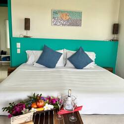 + Wir hören in der Nacht die Wellen rauschen, er ist sehr geräumig, sauber und alles ist aus Holz. Unsere Putzfrau macht uns immer schöne Figuren aus den Badetüchern 🤙🏼 Es hat fast keine Krabbeltiere (ausser die sehr wilkommenen Geckos.. Geckos im