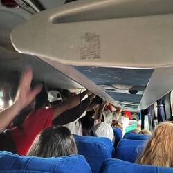 Nach ca. 45 Minuten und einer weiteren Zahlung an einem der Checkpoints sichteten wir die majestätischen Palmen vor uns. Inzwischen regnete es nicht mehr ganz so fest und wir konnten ein paar tolle Fotos schiessen. Was für ein fantastischer Anblick…In solchen Momenten bereuen wir es, unsere gute Kamera Zuhause gelassen zu haben. 🫢 Nach etwas mehr als 4 Stunden erreichten wir unseren Ausgangspunkt und sicherten uns sogleich einen Platz in einem der Jeeps um zurück nach Salento zu fahren. Rocco musste leider mit einen der Stehplätze hinten auf dem Auto vorlieb nehmen.🤭