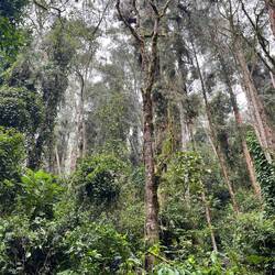 Da wir gerade so im Flow waren, verzichteten wir auf eine zweite Pause und machten uns an den Abstieg. Jetzt war es kein Waldweg mehr sondern eher eine schmale, erdige Strasse die uns den Berg hinunterführte. Leider regnete es inzwischen in Strömen und wir konnten nur hoffen, dass wir dennoch eine gute Aussicht auf die höchsten Palmen der Welt haben werden.