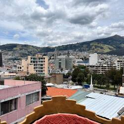 In der höchst gelegenen Hauptstadt der Welt, Quito, wurden wir nach einer kurzen Taxifahrt herzlich in unserem Hotel begrüsst. Jeder Raum wurde individuell gestaltet und ist mit Wandmalereien verziert. Unser Zimmer heisst Mochica und wir fühlen uns trotz des riesigen Drachens an der Wand pudelwohl hier.