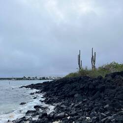 Die 30 Minuten Wartezeit verbrachte ich in der Bucht Playa de la Estacion. Währenddem ich mit meiner Mutter telefonierte fiel ich beinahe über einen der schwarzen, sehr gut getarnten Marine Iguana, welcher sich auf den schwarzen Lavasteinen sonnte. Wenn man einen entdeckt hat, sieht man sie auf einmal überall und so verflog die Wartezeit wie im Flug. Bei der Tour nahmen noch 2 weitere Schweizerinnen aus Bern teil, eine Familie aus Spanien und ein Pärchen aus Ecuador, das aber ab und zu Deutsch sprach und so aussah, als seien sie direkt von BigBrother oder aus dem Dschungelcamp entflohen.#plasticsurgery😅