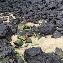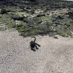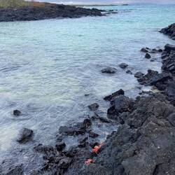 Dafür entdeckten wir ganz viele Klippenkrabben, die mit ihrer roten Farbe auffallen. Diese Krabben gibt es auch an den Küsten Südamerikas, dort sind sie aber nicht immer so auffällig gefärbt, da dies ihr Tod bedeuten würde. Auf Galapagos haben sie aber viel weniger Feinde und so können Sie immer mit ihrer Farbe prahlen.