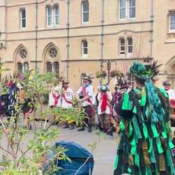 Before we knew we were catching up with Heather and Adam we’d booked a walking and punting tour led by an Oxford student. The heat was building up by then and the UK is just not designed for it! Some serious sweating and then welcome relief of rain. We wandered all the special Oxford sights as well as the world’s second largest bookshop. All this time we were entertained by groups of Morris dancers in their pagan outfits, big sticks and bells on their legs. There was some kind of festival afoot.
