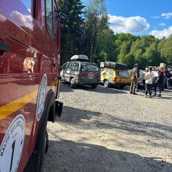 Wir stehen heute Nacht mit mehreren Teams am Fjord. Team 2 bekommt die Flex und das Schweißgerät von uns um den Auspuff zu reparieren.