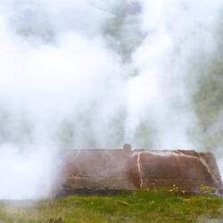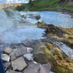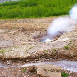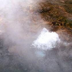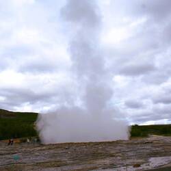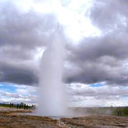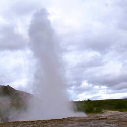 Der bekannte Geysir, ca. alle 7-8 Minuten spukt er seine Fontänen in die Höhe. Dieses entsteht, wenn Wasser in Kontakt mit heißem Magma oder Gestein erhitzt wird und unter Druck steht.