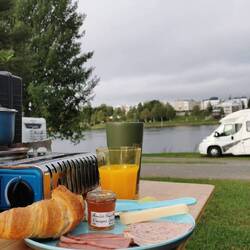 Unser heutiger Schlafplatz am Grenzfluss 🇫🇮🇸🇪. Dieser wunderschöne Platz haben wir wieder über das Park4night gefunden.