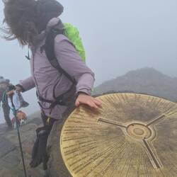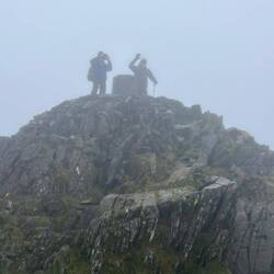 Up early and a 40-minute drive to Llanberis to catch the train to the summit of Mount Snowden. Didn't see much on the way up because of the fog and rain. Arrived at the top around 10am after an hours train ride. Put on all our cold/wet weather gear before going up to the summit (about 2 minutes from the station).