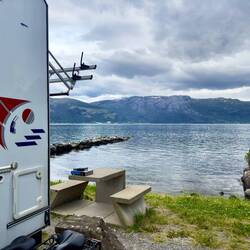 Voilà, aujourd’hui nous avons un peu plus bougé et surtout nous nous sommes sortis vivant du labyrinthe routier de Bergen, où même notre gps a pété un plomb. Nous avons fait des aller-retour entre un giratoire et un tunnel et avons failli prendre semi-autoroute à contresens. Mais bon, le reste du trajet c’est bien passé avec un arrêt vers une cascade et nous sommes tout de même arrivés sur cette super place au bord de l’eau avec vue.Læs mere