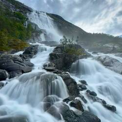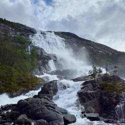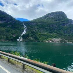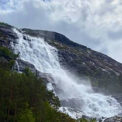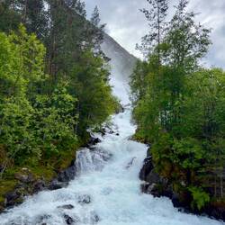 Aujourd’hui c’était petites routes et cascades, jusqu’au but de la journée la cascade de Langfossen. La cinquième plus haute de Norvège avec 612 m et l’une des plus belle du monde.