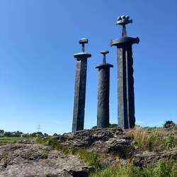 Le monument représente trois épées enfoncées dans le rocher. Les épées sont faites de bronze, et ont une hauteur de près de dixRead more