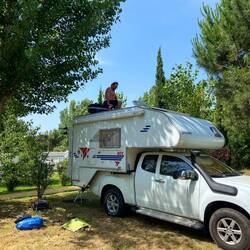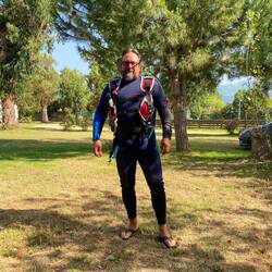 On est à Algajola pour 17 jours de Beach et plongées avec Fredo, Marilyn, Guylaine et Lucien. Après avoir installé nos affaires, j’ai fait un petit essayage du matos de plongée. Ça va être génial !