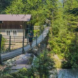 Notre rando d’aujourd’hui s’est super bien passée ! Le parcours était vraiment sympa, avec un petit pont suspendu et les ruines d’un ancien château. On a passé une super journée !