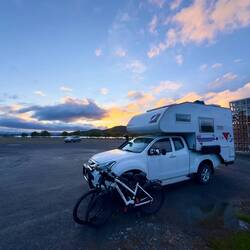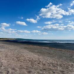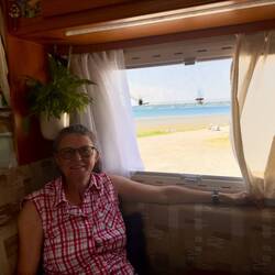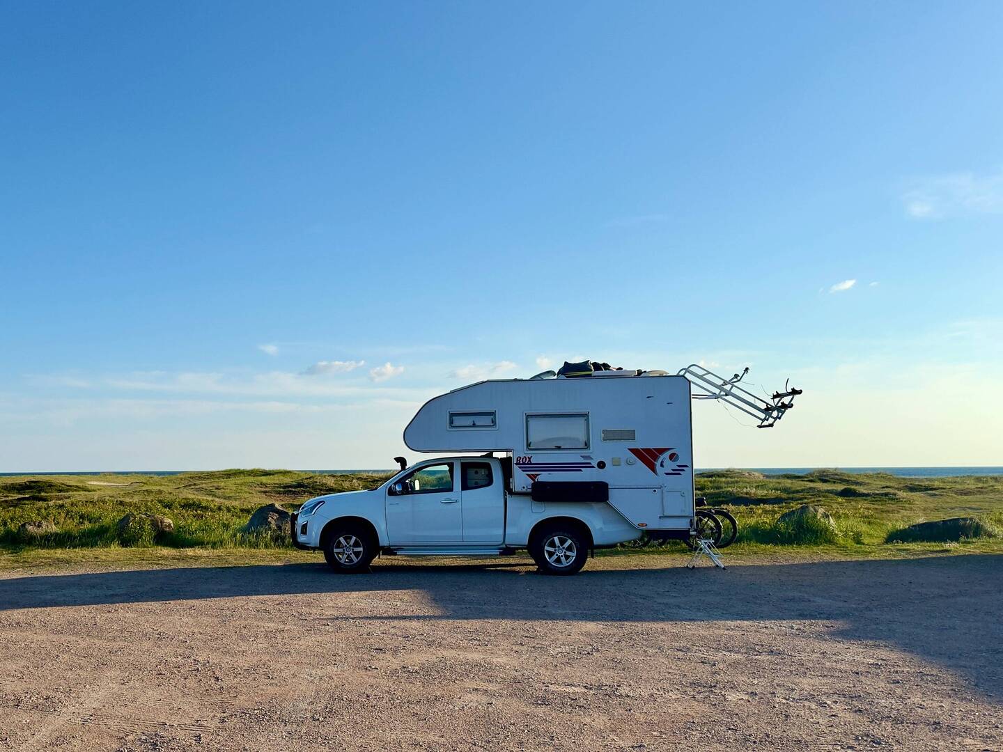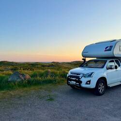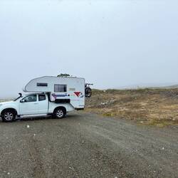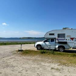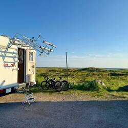 Notre étape pour la nuit. Super place au pied de la plage mais ça secoue dans le camping-car, de grosses bourrasques.