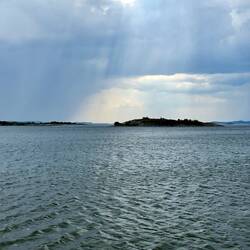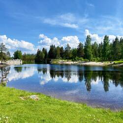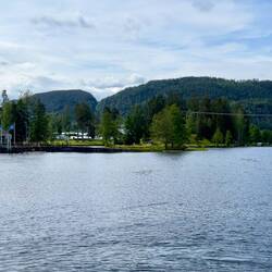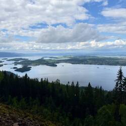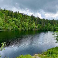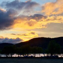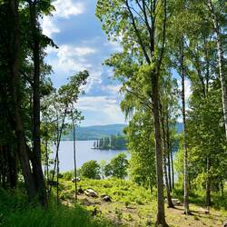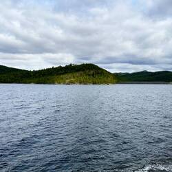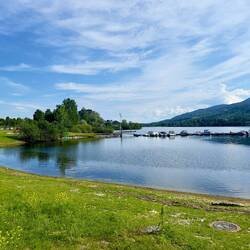 Nous avons quitté notre magnifique camping au bord de la rivière et nous voilà au bord d’un lac, mais ce coup en montagne à près de 1000 m. Ça nous change 6 degrés, on a sorti les pantalonsLäs mer