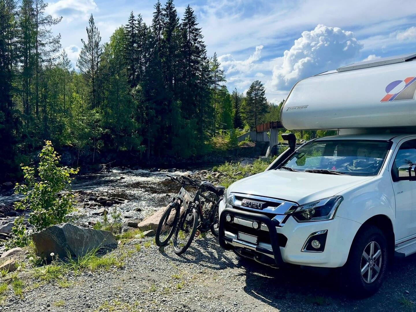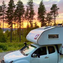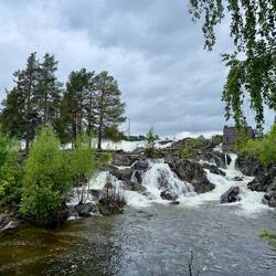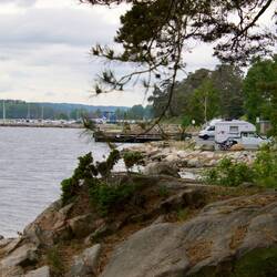 Halte dans une petite ville au bord d’un lac. On en a profité pour aller faire une sauna (sauna 80* eau 8*). BonLäs mer