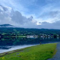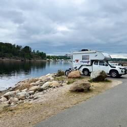 Nous voilà en Norvège et une place pour la nuit au bord de l’eau dans un joli fjord