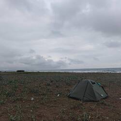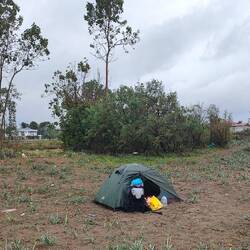 Leider hat's in der Nacht dick gewittert und aus Kübeln geregnet, das Zelt hat's zwar standgehalten aber jetzt ist so einiges Material nass und sandig...