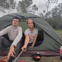 Zelt, Schlafsäcke und Ausrüstung haben den Härtetest gut überstanden, mit einigen Schichten Kleidung an war es nicht ganz so kalt