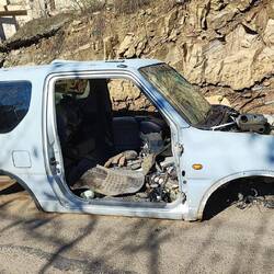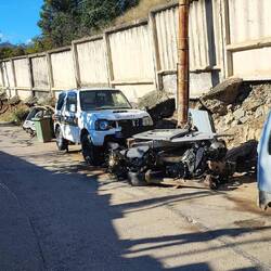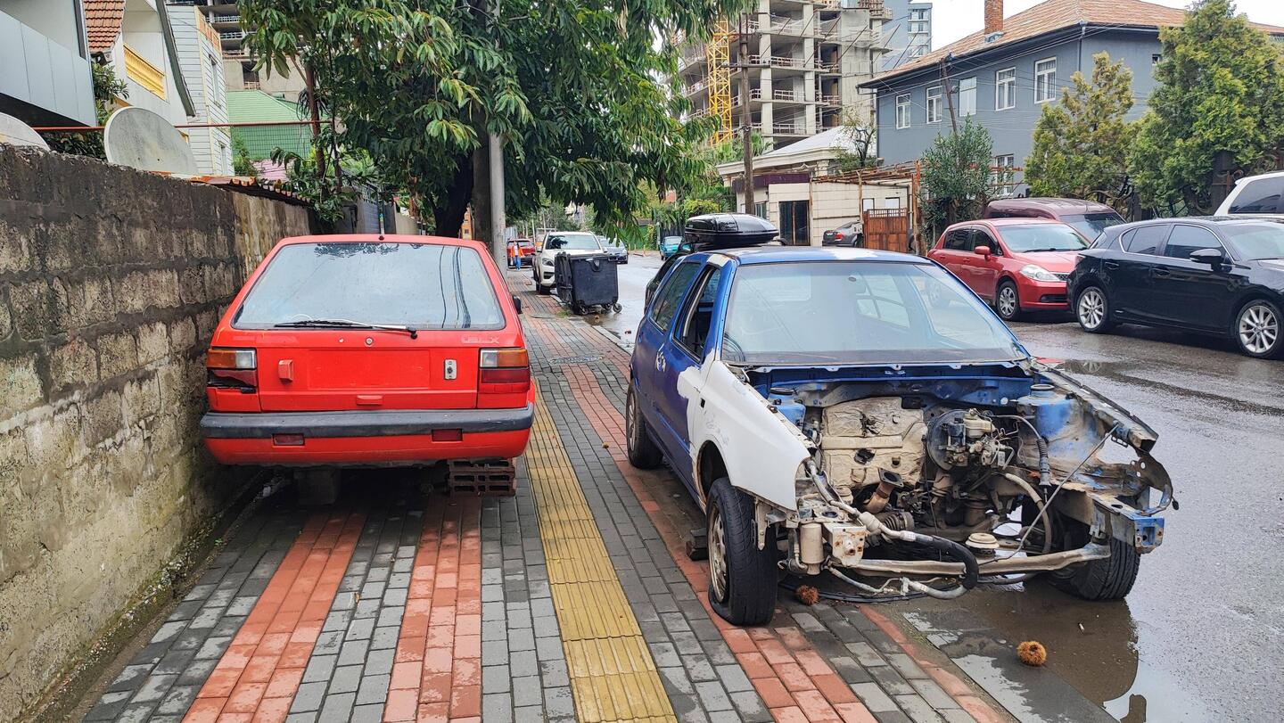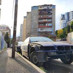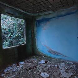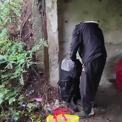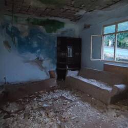 In einer zugewachsen verlassenen Garage... Auf den anderen Bildern noch die Häuser hier mit den überirdisch verlaufenden Strom und Wasserleitungen und ein Platz in der Innenstadt