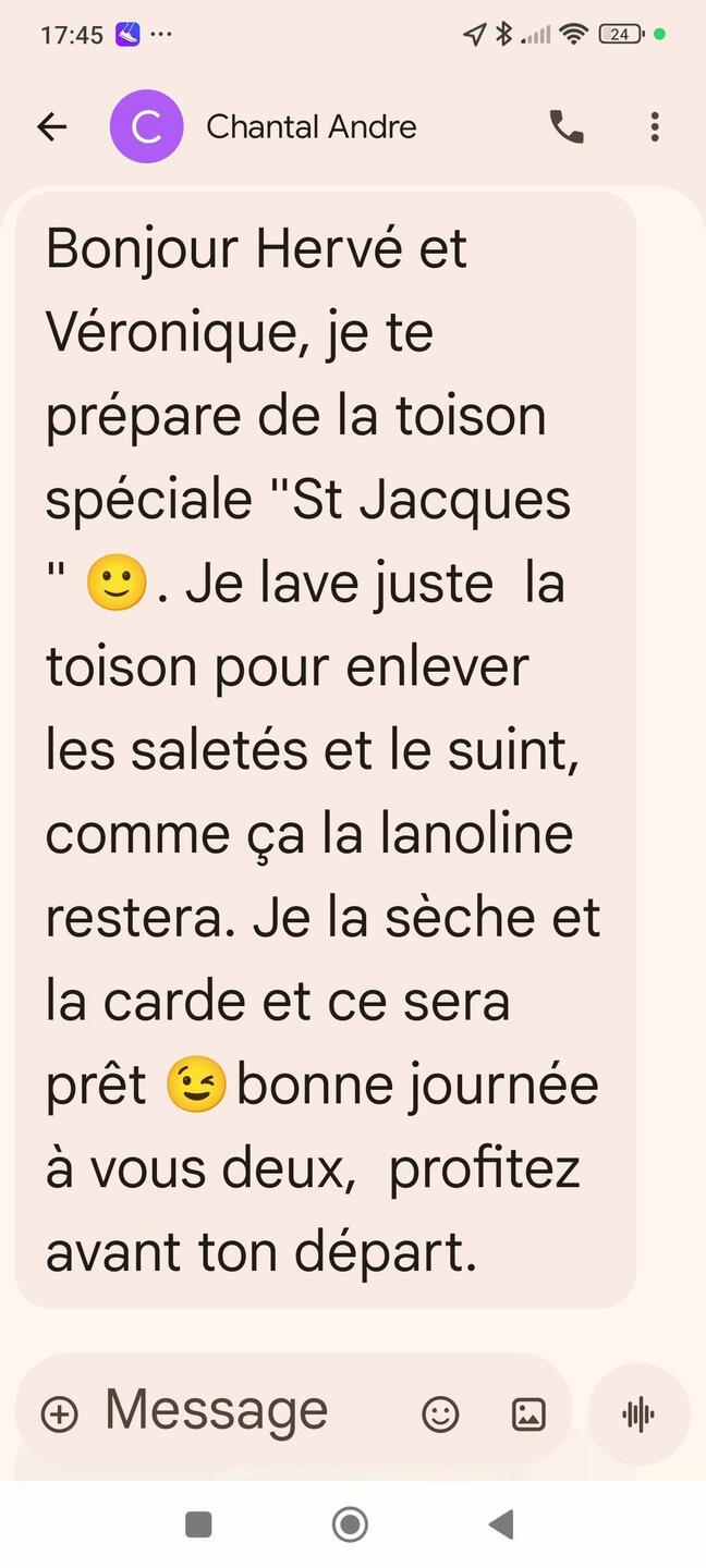 Chantal me prépare de la laine cardee pour les pieds 👣