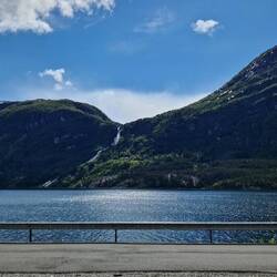 Wir haben einen super Wohnmobilstellplatz im Hafen von Sauda gefunden. Stehen direkt am Wasser und sind fast alleine hier.