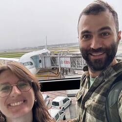 Sodeli! Es geit los. Nach intensive Reisevorbereitige, was vorauem dr Bügu betroffe het, si mr vo Züri us nach Doha gfloge. I ha druf bestande 23 Stutz fürne Platz am Fänster z'zahle und dr Ash het wöue wit vore im Flüger hocke. Die Entscheidig het mi i die gröschti Enttüschig vom erste Reisetag gstürzt. Mir si GENAU überem Flügu gsässe und i ha nid viu gse 🥲