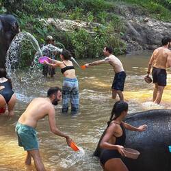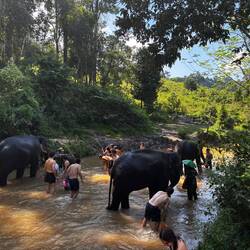 Before you could enjoy our Pad Thai in the sun, we went for a swim with the elephants! And yes, it is part of their natural routine and was not forced. Not all the elephants got into the water. 🐘💦💦