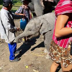Ahhh! Es war so ein schöner und spannender Tag!!! Wir hatten die Möglichkeit eine ethisch vertretbare Elefantenauffangstation zu besuchen. Dort leben nur weibliche Elefanten. Momentan sind es 4 grosse Weibchen, wobei eine schwanger ist und eine kleine 6 Monate alte Elefäntin 💛