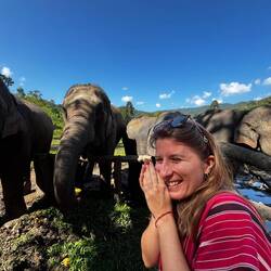 Ahhh! It was such a beautiful and exciting day!!! We had the opportunity to visit an ethical elephant sanctuary. Only female elephants live there. At the moment there are 4 large females, one of which is pregnant and a small 6 month old female elephant 💛