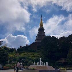 Due to the high humidity, it is a so-called cloud forest. Everything is overgrown with moss and lianas. There are mountain goats and actually tigers in this region, but unfortunately we didn't see either. The hill tribes used to grow opium, but the former king has worked out a new project with them to grow flowers and vegetables. And now an Ändi bird of paradise is stuck on a sign on the highest elevation in Thailand 💛💚