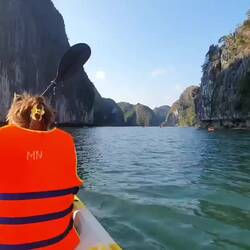 Jetzt war es Zeit zum Kayaken! Nicole hatte es mit mir nicht einfach. weil ich den Paddlerhythmus gehalten habe haha ich war zu beschäftigt die Kalkformationen um mich zu bestaunen. Wir haben die Materialien gesehen für den Fang von Fischen, Krabben, Garnelen, Muscheln und Tintenfische. Auf einem schwimmenden Restaurant konnten wir sehen, wie Austern an Schnüren gezüchtet werden.