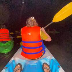 Dann kam die grosse Sensation!! Wir sind in der Nacht Kayak gefahren und wer mich kennt, denen hängt nun der Kinnladen runter. Genau ich, manchmal Angsthäschen im Meer, war in der Nacht Kayaken im Meer. Das als Beweis, dass sich alle weiter entwickeln können 🤩😄