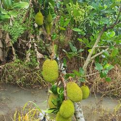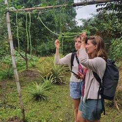 Nächster Halt war ein tropischer Garten. Wir haben gesehen, wie die verschiedenen Fruchtbäume aussehen und wir konnten eine Jackfruit am Baum heben. Die war sicher 20 kg! Sunny hat uns erzählt, dass die bis zu 50kg schwer werden können und es hängen mehrere am Baum 😱😱😱