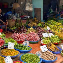 Then Nicole and I were lucky again because we were the only ones who had booked the tour! We had a private tour with the tour guide Sunny, who was great fun. We had plenty of time to ask questions and we were also able to discuss critical aspects. It was very exciting because Sunny is a real Mekong Boy, as he grew up on the boat on the Mekong. We travelled on a small wooden boat to the Cai Rang floating market. This is where the middlemen buy large quantities (from 10kg) of food. They sell everything except meat, fish and dairy products. The boats are not just a sales area; people live on them. They have relatively little space and life is hard. There used to be up to 1,000 boats in this market, but unfortunately life on the water is getting harder and harder and this way of life is unfortunately becoming extinct...
