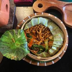 Als kleiner Snack haben wir uns vietnamesischi Pancakes mit Mungobohnenfüllung gekocht. Die werden dann in Blätter eingewickelt und mit Soyasauce gegessen - sooo lecker 😍😍