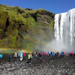 Tussen de Ejyafjallajökull en de Myrdiljökull omspringt het riviertje wat de Skogafoss voedt.Erg mooie waterval en de spray in combinatie met de zon creëert een dubbele regenboog. Ook regent hetLue lisää