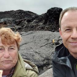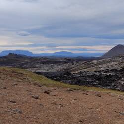 Een lavaveld van de Krafla vulkaan, feitelijk uit een 11km lange spleet vulkaan, lava reikt tot aan zee.