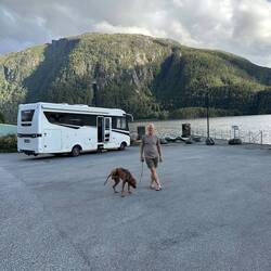 Heute mit Blick auf den Velfjord gefrühstückt.Danach nutzten wir die Regenlücke um eine schöne Hunderunde zu laufen. Leider hat es nicht geklappt und wir waren glitschnass . Doch als wir am Womoもっと詳しく
