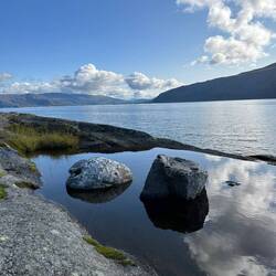 Heute wieder gut gefrühstückt und schön Hunderunde gedreht. Und weiter ging es auf der Küstentrasse Fv17. Eine wunderschöne Straße mit einer traumhaften Kulisse. Zwischendurch 3 Fähren. Auf derもっと詳しく