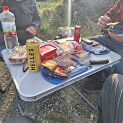 Der Platzwart schaute streng, bot uns zur Entspannung eine Erbsensuppe an, wollte aber keinen Feuerplatz freigeben.