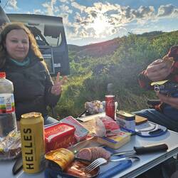 Kleiner Zwischenstand, noch knapp 140 Kilometer bis zum Nordkapp. Unterwegs Pinkelpause und Tankstopp, dabei festgestellt, dass der Diesel hier z. T. sieben Kronen teurer ist, als im Inland. Memo anLue lisää