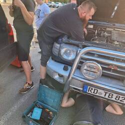 Plan A war ja, da rein zu gehen, die Lichtmaschine da zu holen, dann zum Campingplatz,Lue lisää